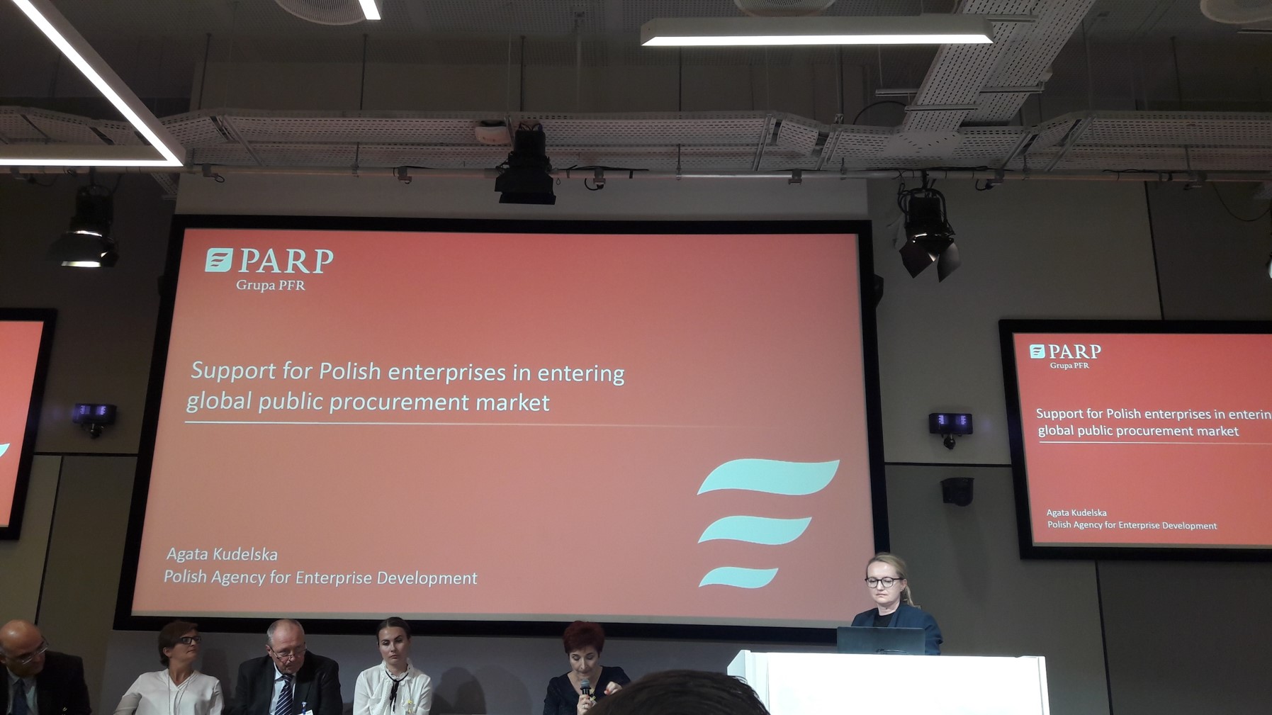 Agata Kudelska z Departamentu Wsparcia Przedsiębiorczości opowiedziała uczestnikom o działaniach Polskiej Agencji Rozwoju Przedsiębiorczości, które wpisują się w szeroko rozumianą współpracę rozwojową. W PARP działa Punkt Informacyjny Międzynarodowe Zamówienia Publiczne – jego eksperci pomagają przedsiębiorcom m.in. w przejściu przez proces rejestracji do bazy zamówień publicznych ONZ. Udzielają również porad eksperckich, a sama instytucja organizuje dla przedsiębiorców seminaria dotyczące tematyki międzynarodowych zamówień publicznych – jak wziąć udział w przetargach i jak zwiększyć szanse na jego wygranie.