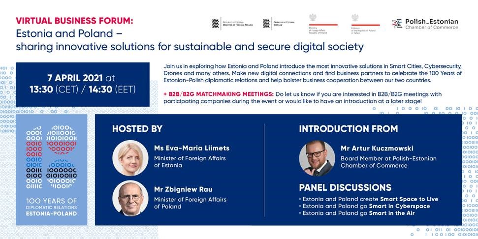 Zapraszamy do udziału w „Virtual Business Forum: Estonia and Poland – sharing innovative solutions for sustainable and secure digital society”, które odbędzie się 7 kwietnia br. o godz. 13.30.