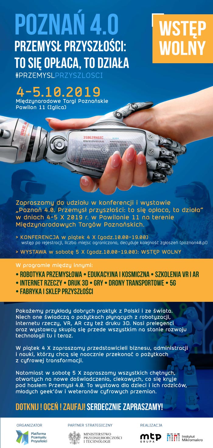 Zapraszamy do udziału w konferencji i wystawie „Poznań 4.0. Przemysł przyszłości: to się opłaca, to działa”.