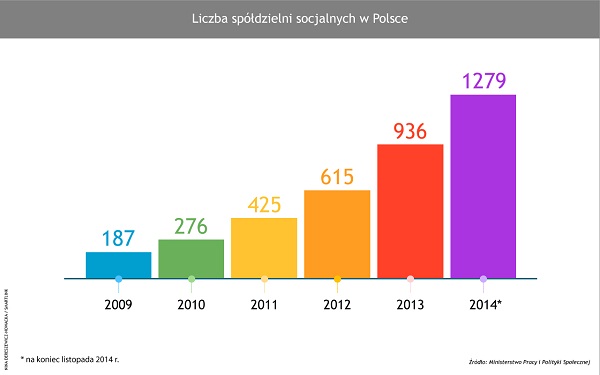 Po latach zdewaluowanej idei spółdzielczości, dzięki środkom EFS, w naszym kraju ożyła idea spółdzielczości socjalnej. Instytucja spółdzielni socjalnej została wprowadzona ustawą z 20 kwietnia 2004 r. o promocji zatrudnienia i instytucjach rynku pracy, która jednocześnie zmieniła ustawę z 16 września 1982 r. Prawo spółdzielcze. Aktualną podstawą prawną dla działania spółdzielni socjalnych jest ustawa z 27 kwietnia 2006 r. W ciągu ostatnich pięciu lat ich liczba wzrosła prawie o 1100 (w roku 2009 r. było ich 187 – por. infografika).