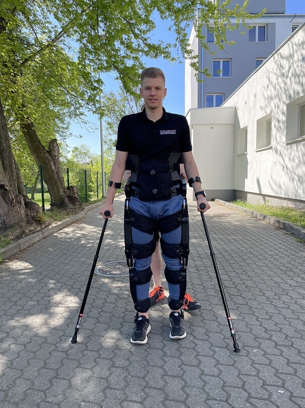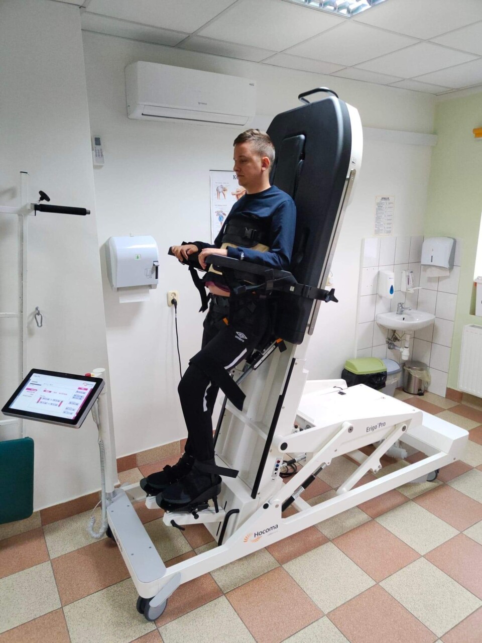 Innowacja terapeutyczna- egzoszkielet zasilany kończynami dolnymi oraz stół pionizacyjny z funkcją kroczenia.