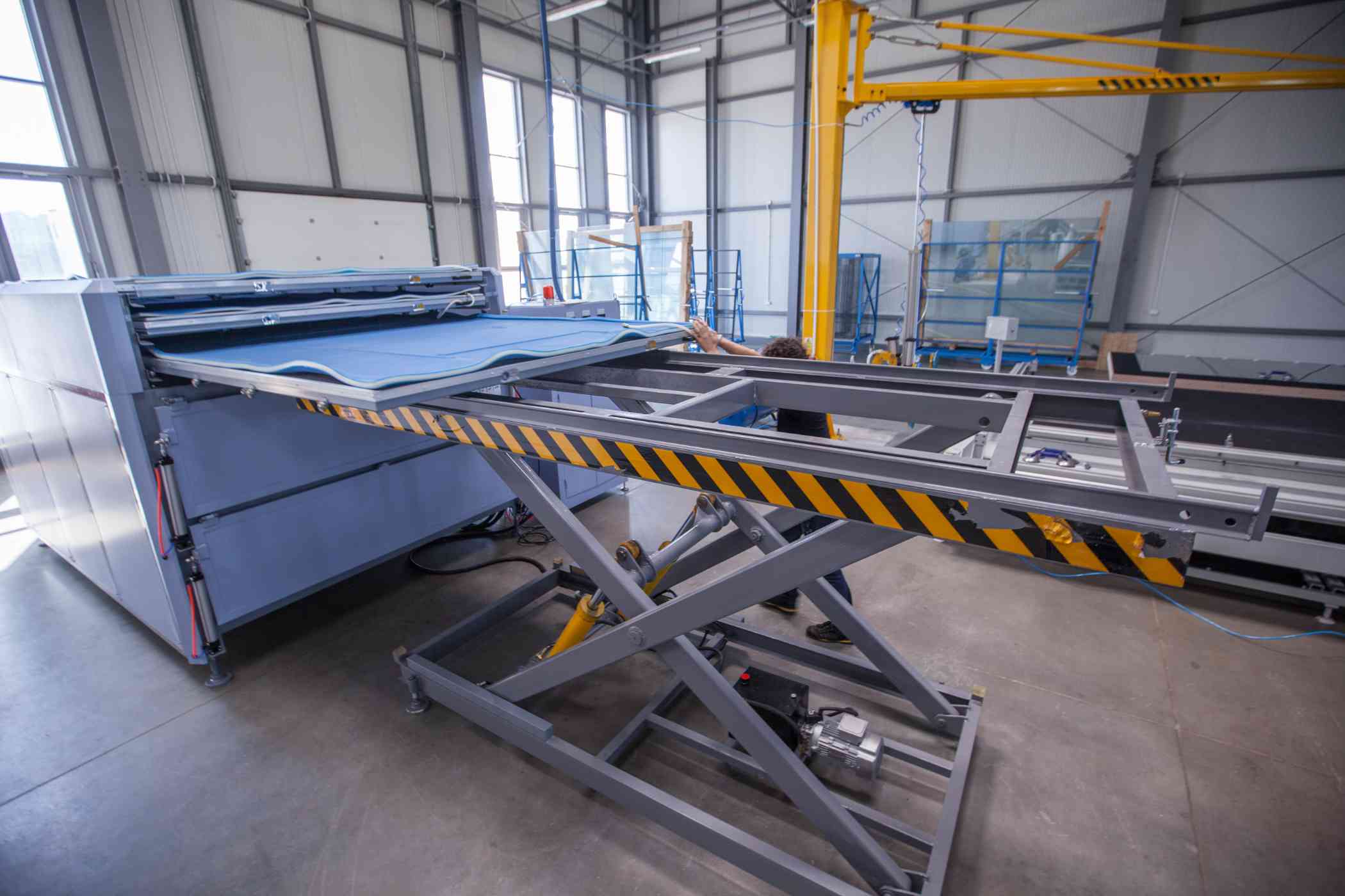 Hala produkcyjna, zbliżenie maszyny z platformą sterującą
