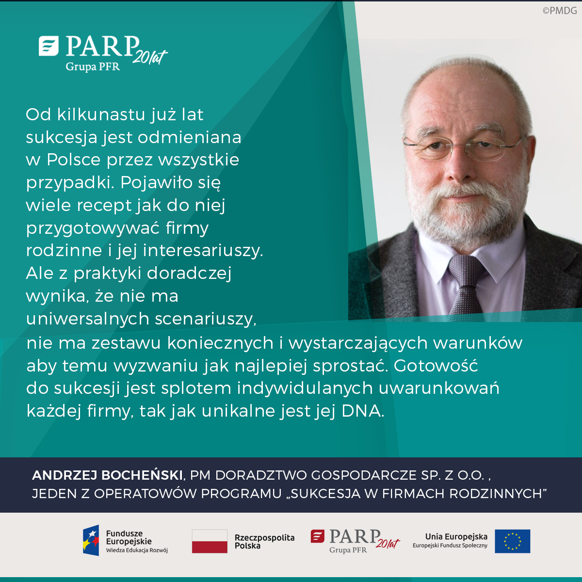 – Zasadniczą rolą doradcy w obszarze sukcesji jest podejście zmierzające w pierwszej kolejności do identyfikacji, ograniczenia i oswojenia biznesowych i emocjonalnych zagrożeń oraz minimalizacja wynikających z nich negatywnych konsekwencji. Dopiero w takim środowisku szanse sukcesyjne potrafią nabrać realnych kształtów. A jeśli biznes rodzinny i rodzinę biznesową charakteryzuje pozytywny, sukcesyjny potencjał, to takie podejście radykalnie zwiększy prawdopodobieństwo udanej zmiany pokoleniowej – mówi Andrzej Bocheński z PM Doradztwo Gospodarcze sp. z o.o., jeden z operatorów programu PARP.