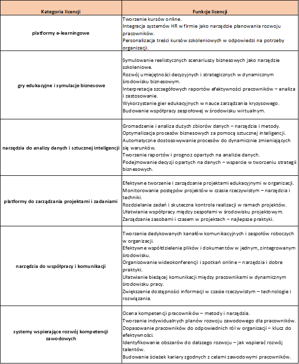 Warto wiedzieć, że opracowana została otwarta lista kategorii i funkcji licencji, które można objąć dofinansowaniem. Inne, spełniające kryteria rozwiązania również mogą zostać uwzględnione.
