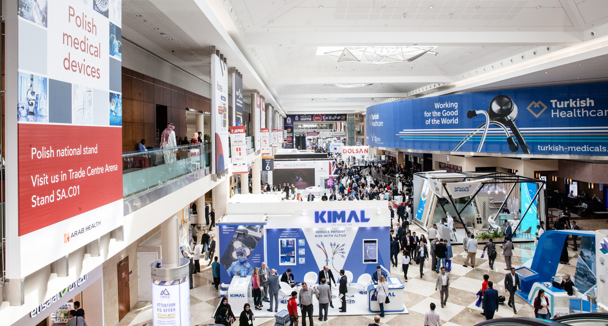 W dniach 28-31 stycznia 2019 odbyły się największe i najważniejsze targi branży medycznej Bliskiego Wschodu i Afryki Północnej – Arab Health w Dubaju, gdzie Polska Agencja Rozwoju Przedsiębiorczości na zlecenie Ministerstwa Przedsiębiorczości i Technologii zorganizowała stoisko narodowe o powierzchni 288 m2, na którym materiały promocyjne (drukowane i audiowizualne) zaprezentowało 108 firm z Polski, z czego ponad 50 z nich to przedsiębiorstwa nie mające statusu samodzielnego wystawcy, czyli nie posiadające własnego stoiska.