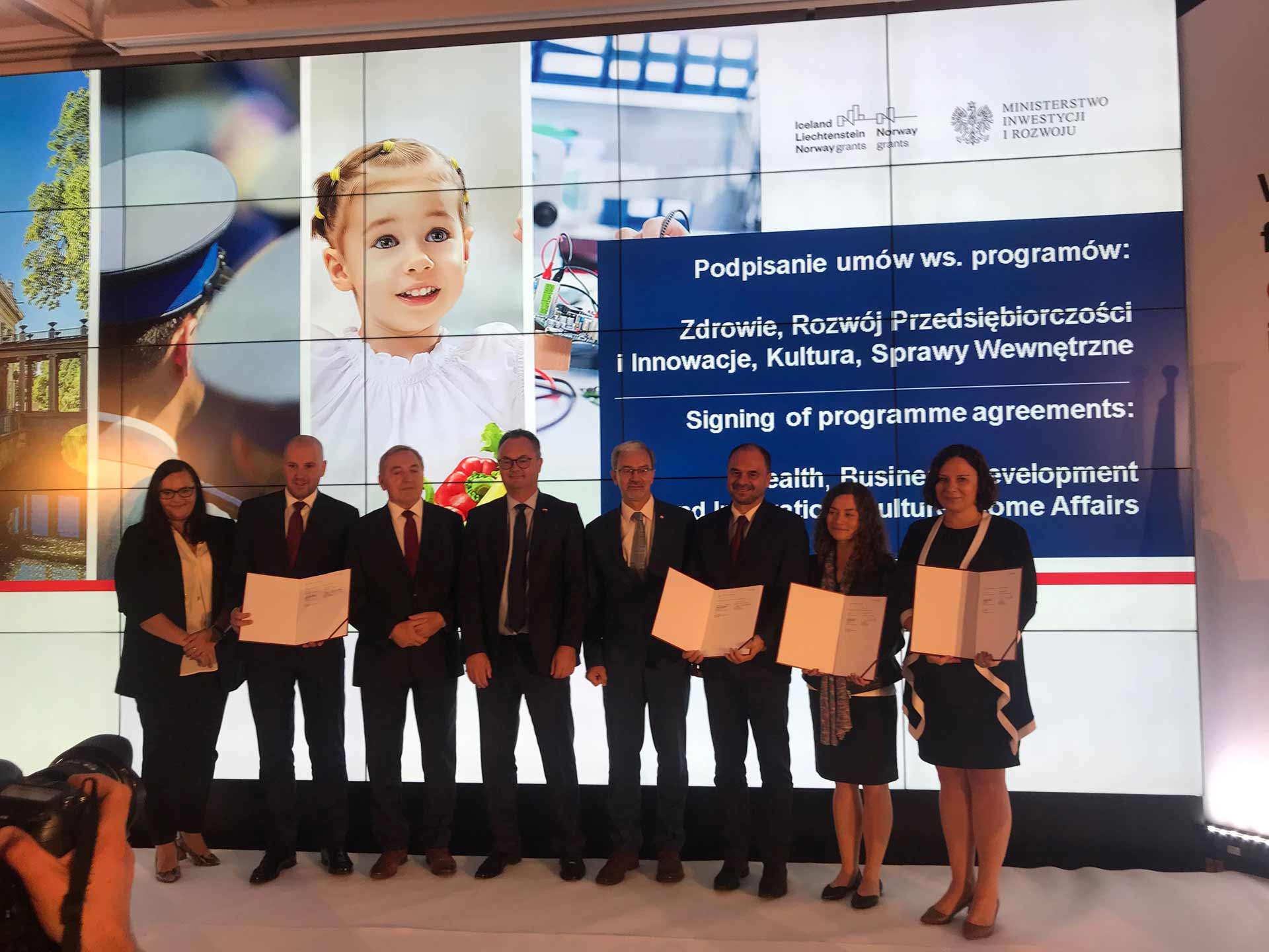 W ramach nowej edycji Funduszy norweskich i EOG zostały już uruchomione trzy pierwsze programy: „Edukacja”, „Badania” i „Rozwój Lokalny”. Dzięki dzisiejszemu podpisaniu umów w sprawie realizacji czterech kolejnych programów: „Kultura”, „Sprawy Wewnętrzne”, „Zdrowie”, „Rozwój Przedsiębiorczości i Innowacje”, zdecydowana większość Funduszy edycji 2014-2021 staje się dostępna do wykorzystania. To szansa między innymi na realizację cennych inicjatyw promujących przedsiębiorczość w obszarze kultury, jeszcze skuteczniejsze zwalczanie przestępczości, wzmocnioną profilaktykę i ograniczanie nierówności społecznych w zdrowiu oraz wspieranie innowacyjności i konkurencyjności polskich przedsiębiorstw.