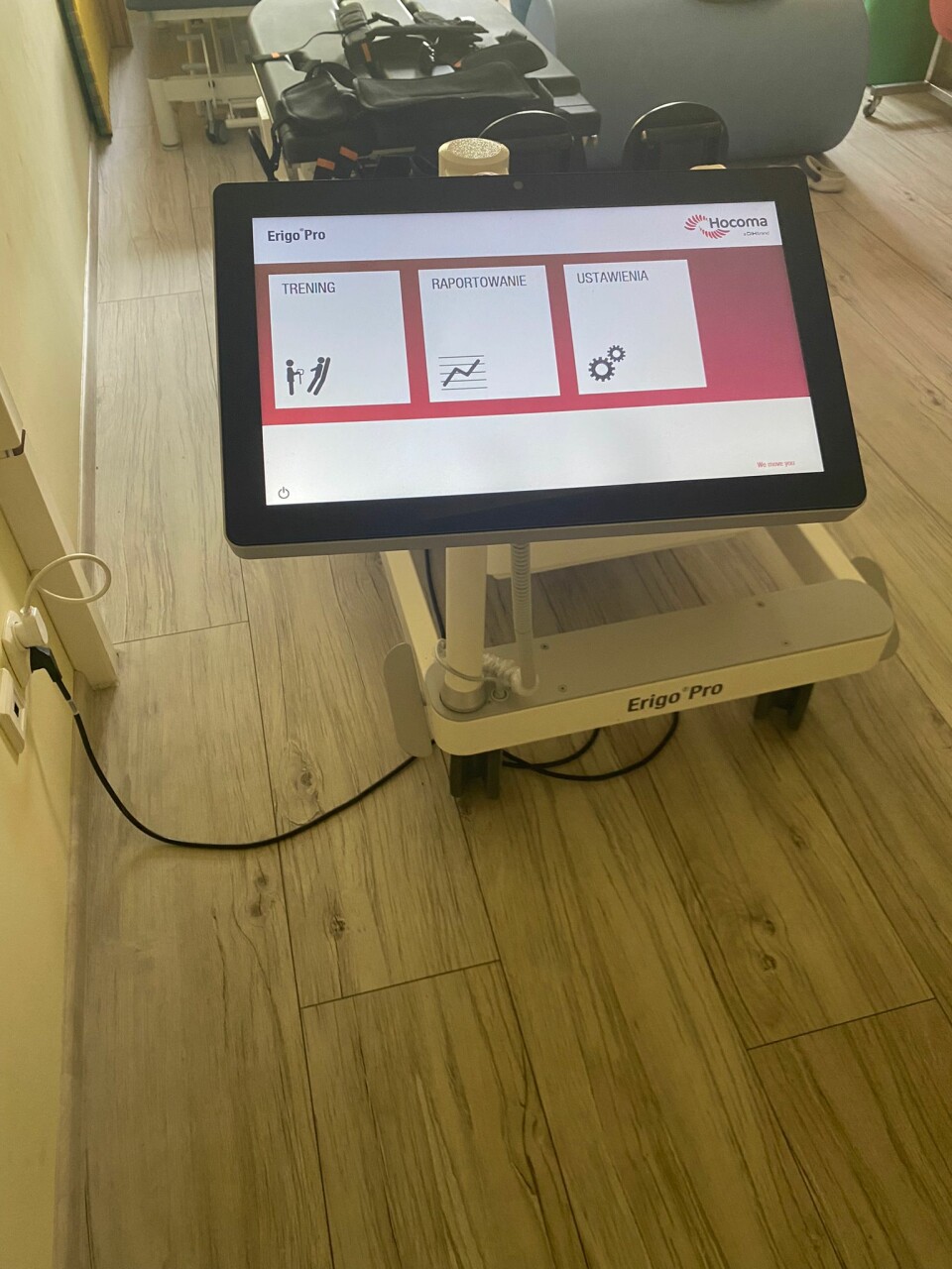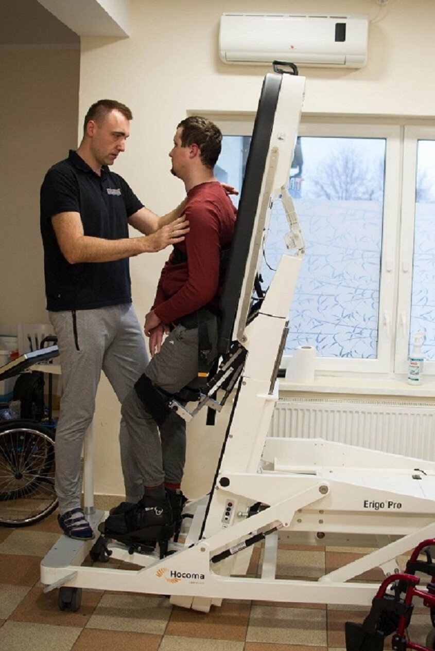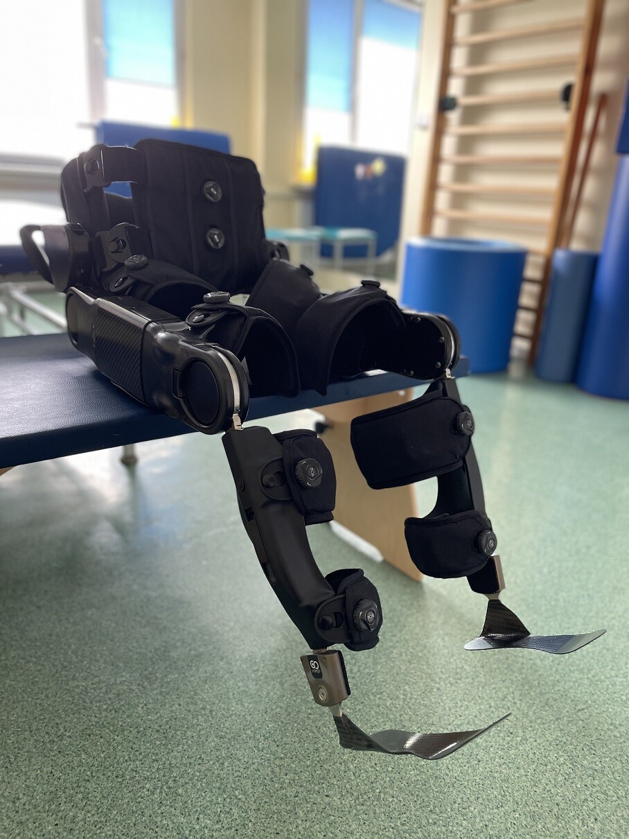 Innowacja terapeutyczna- egzoszkielet zasilany kończynami dolnymi oraz stół pionizacyjny z funkcją kroczenia.